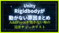 UnityでRigidbodyが動かない原因まとめ|AddForceが効かない時の完全チェックリスト